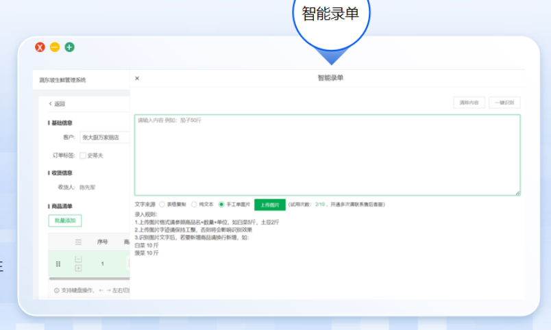 多场景解析:让AI看懂你的需求。借助强大的自然语言处理技术,只需将聊天记录或订单截图等渠道的订单信息粘贴到录单对话框,系统便能自动解析商品数据,快速、准确地完成录入。