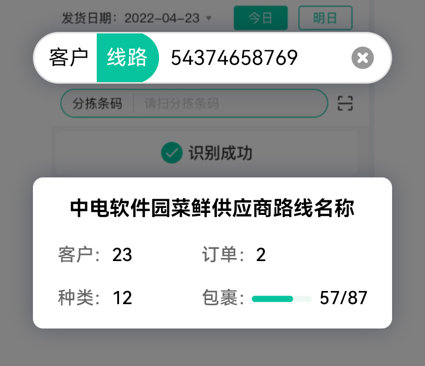 部分客户的投线和装车不需要过于细致的流程,比如餐饮配送客户,按“线路”即可进行投筐核验和装车核验。