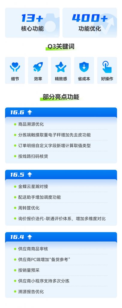 当然,本季度的惊喜远远不止以上,下面为本季度功能更新详细汇总,事无巨细,精准赋能生鲜食材配送的每个环节。