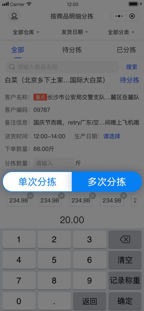 部分供应商的分拣场地没有配备电脑,需要在小程序上进行多次分拣。