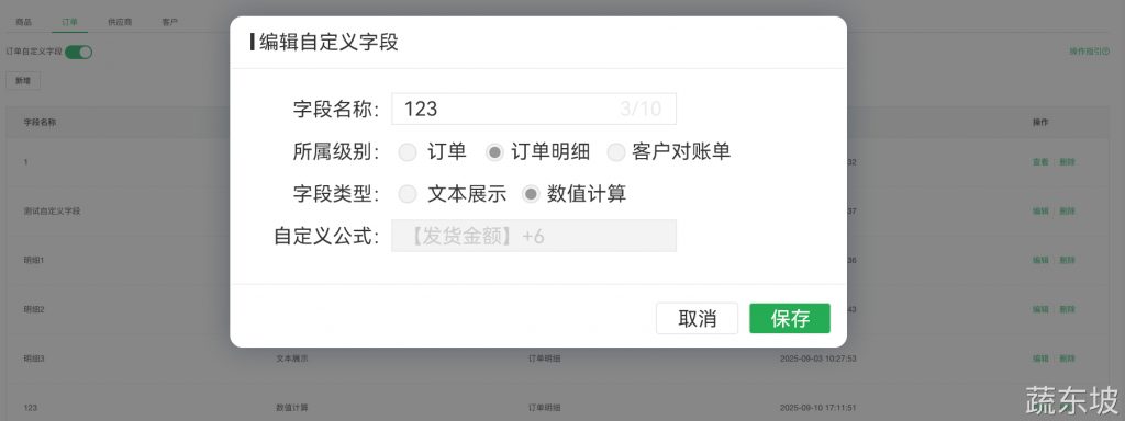 部分客户需要通过一个特定的公式,来计算出订单的某个值,同时这个计算过程不能影响业务,新增计算取值类型后,只需要在自定义字段中设置好公式,就可以进行自定义计算。
